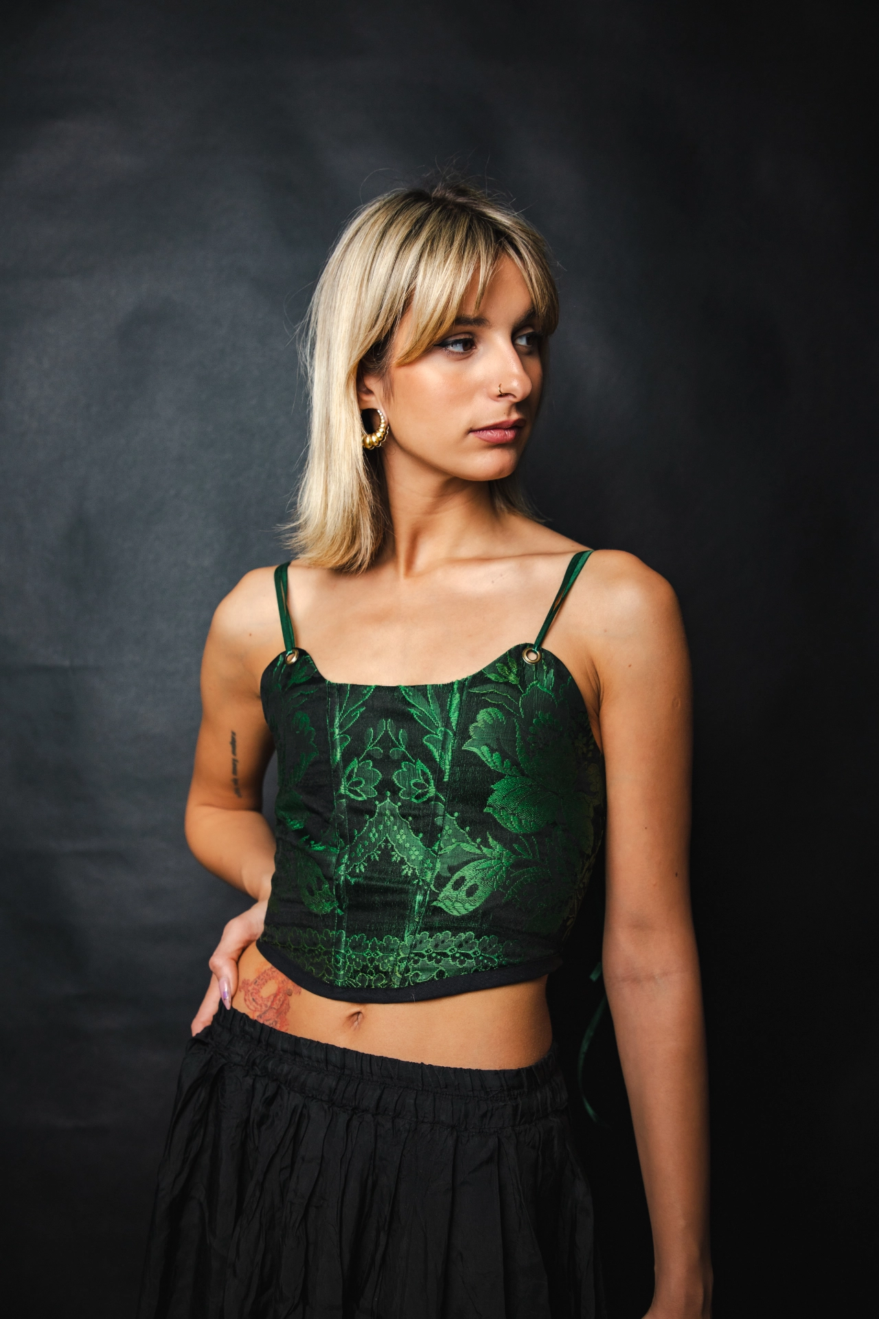 A mély zöld-fekete színpár elegáns, időtlen, és bármilyen alkalmat ünnepivé tesz.